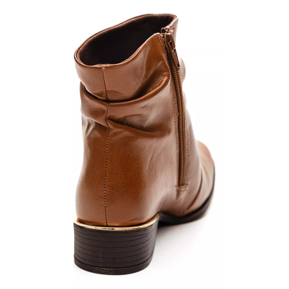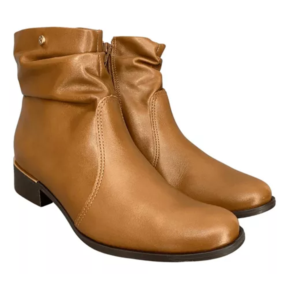 Descubra a bota que vai ser a sua melhor companhia na estação. Este modelo da Ramarim une sofisticação e conforto em um design único, que se destaca pelo cano curto com efeito slouchy (drapeado). Esse detalhe moderno, combinado com o sutil friso dourado no salto, cria um visual elegante e cheio de personalidade.