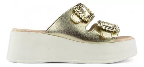 O cabedal apresenta um toque sofisticado com duas fivelas douradas, adicionando um detalhe moderno e elegante. Ideal para diversas ocasiões, este tamanco é a escolha