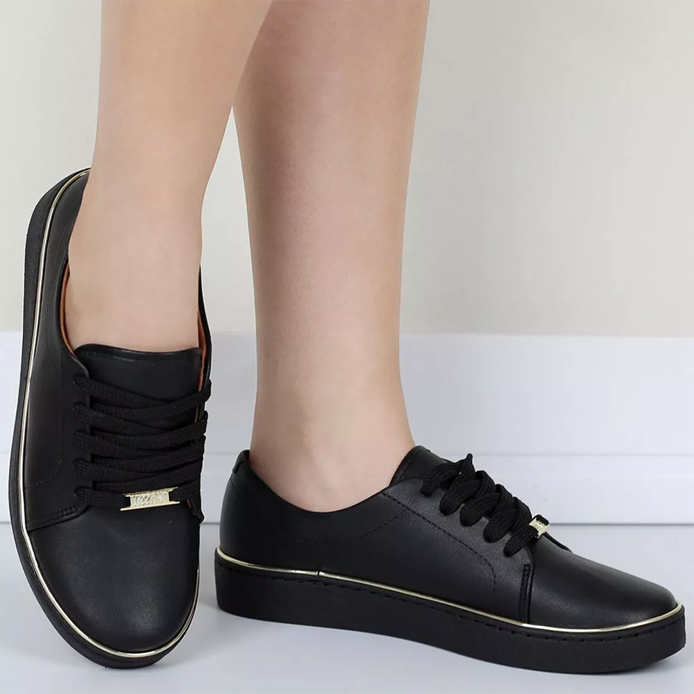 • Diferenciais: Friso metalizado dourado contornando o solado e passador de metal no cadarço.