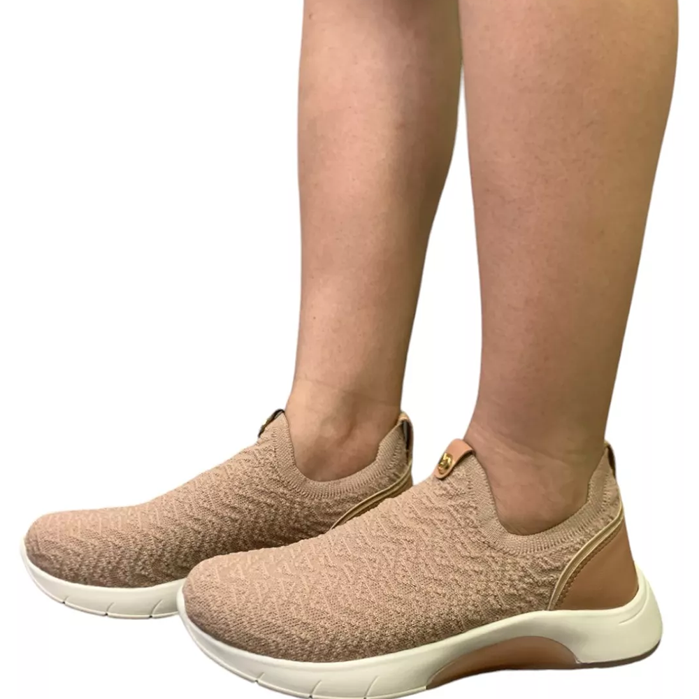 Mas o conforto não anda sozinho: este modelo é cheio de estilo. O detalhe metalizado em ouro rosado no solado e o friso dourado no calcanhar adicionam um toque de sofisticação. Com um solado ultraleve e a palmilha de alta absorção de impacto da Modare, você tem o melhor dos dois mundos: um tênis lindo e incrivelmente confortável.